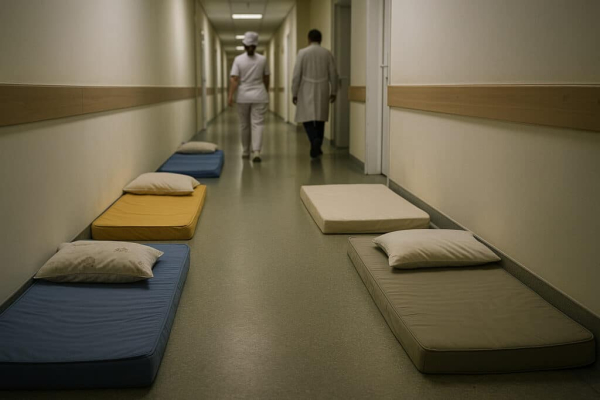 В городской инфекционной больнице Шымкента не хватает коек для всех пациентов, сообщает Telegram-канал HALYQSTAN. Из-за переполнения отделений матери с маленькими детьми вынуждены размещаться в коридорах — им выдают матрасы и подушки, чтобы временно находиться на полу до освобождения мест.