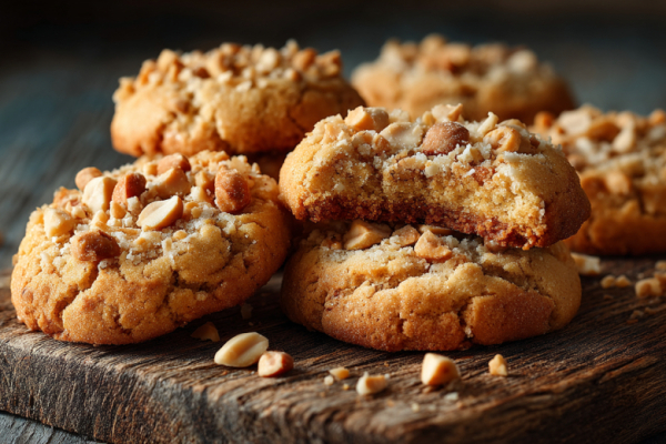 Выкладываю их на противень, застеленный пергаментом, и отправляю в морозилку ровно на 5–7 минут. Охлаждённые заготовки достаю, смазываю сверху взбитым желтком и щедро посыпаю арахисово-сахарной крошкой, слегка прижимая её пальцами. Выпекаю в разогретой до 200 °C духовке 12–15 минут до красивого золотистого цвета. Готовое печенье полностью остужаю на решетке.