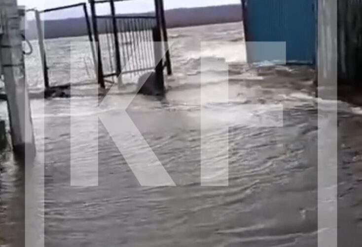 Кадры сняты недалеко от посёлка Васильево под Казанью. На них видно, что вода быстрым течением пробивается через заборы, попадая на жилые участки.
