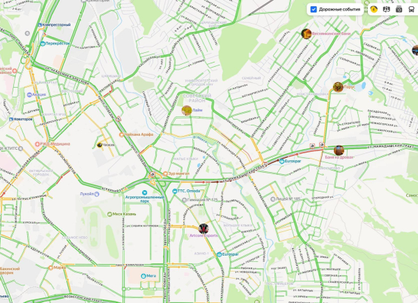 В целом по Казани вечером 14 февраля пробки оцениваются в 4 балла. Напомним, что 13 февраля Казань встала в 9-балльных пробках