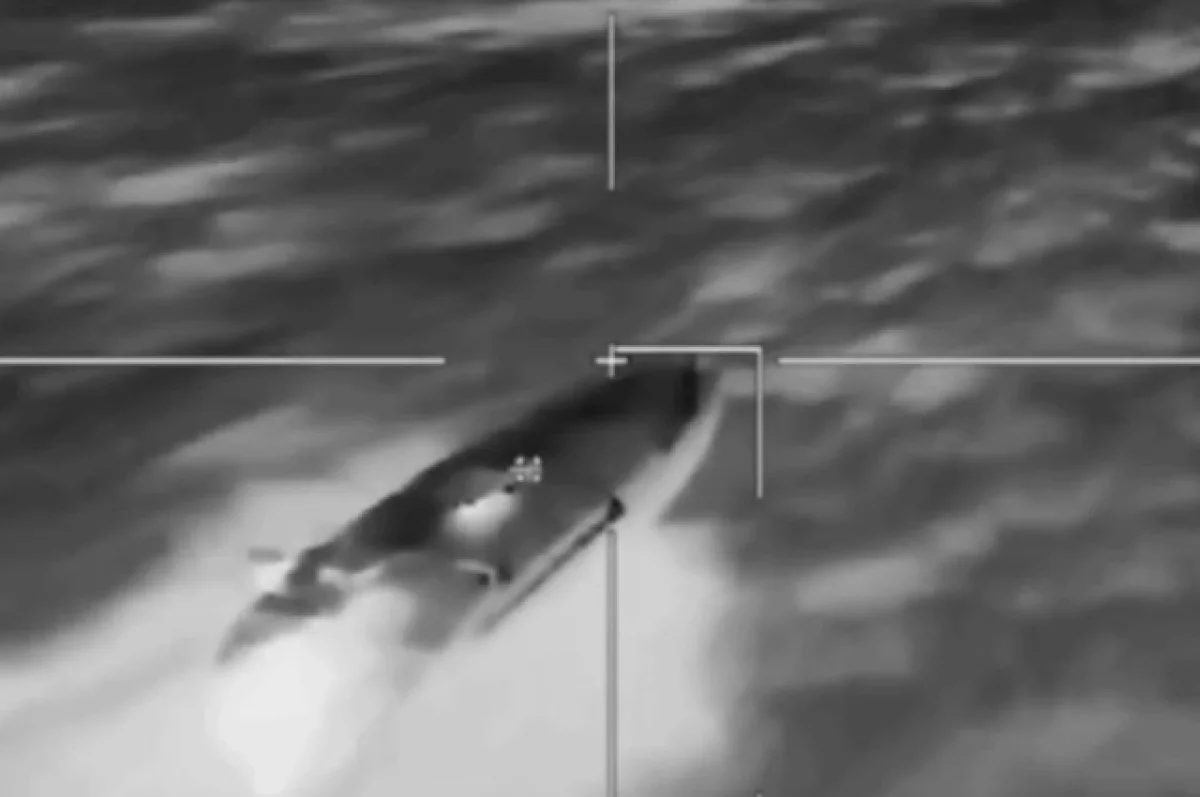 Снятые с дрона кадры уничтожения украинского безэкипажного катера в Черном море опубликовал Telegram-канал «Изнанка».